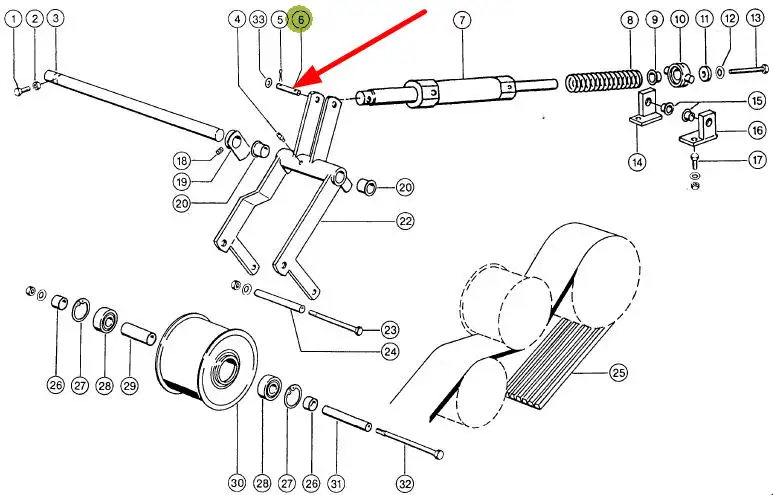 Oryginalny sworzeń napinacza napędu młocarni o numerze katalogowym 644619.0, stosowany w kombajnach zbożowych marki Claas.