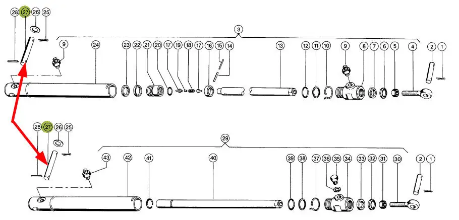 Oryginalny sworzeń siłownika nagarniacza o wymiarach D16 x 86 mm i numerze katalogowym 645343.0, stosowany w hederach i kombajnach zbożowych marki Claas.