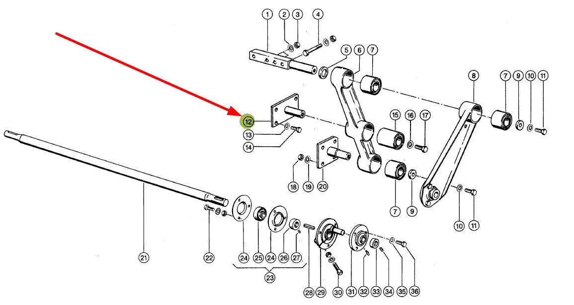 Mocowanie wahacza sit o numerze katalogowym 647451.00, stosowane w kombajnach zbożowych marki Claas.