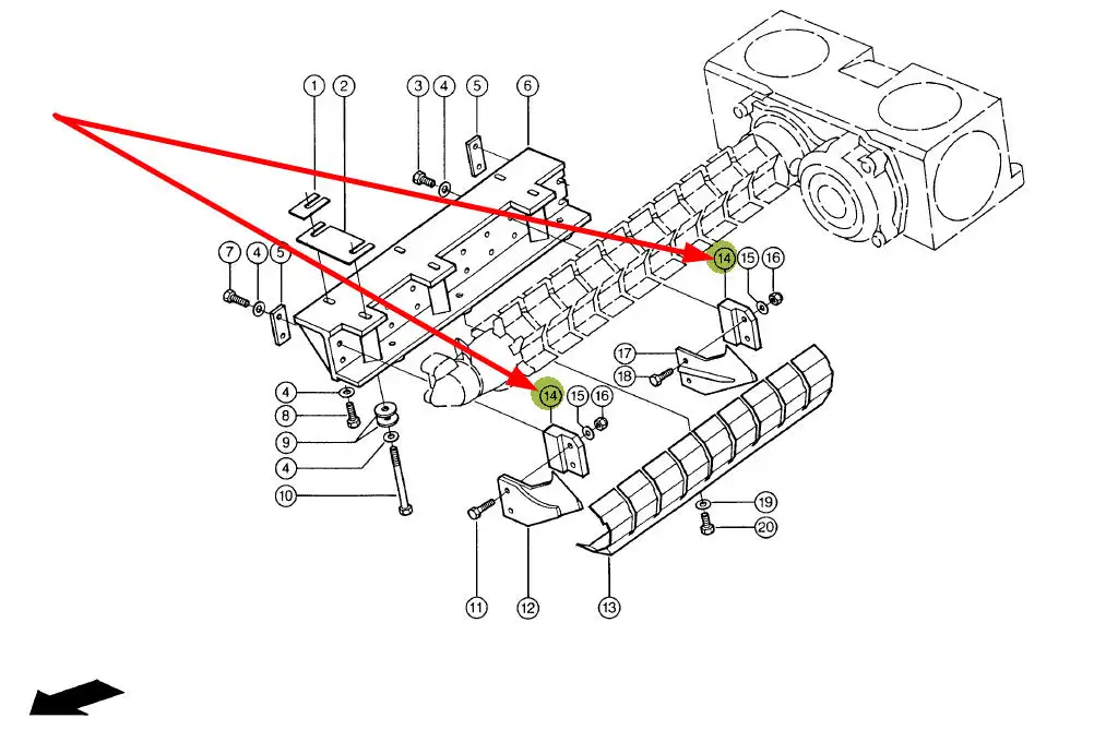 Oryginalny uchwyt kosy o wymiarach 15 x 60 x 48 mm i numerze katalogowym 651882.0, stosowany w przystawkach do kukurydzy marki Claas.
