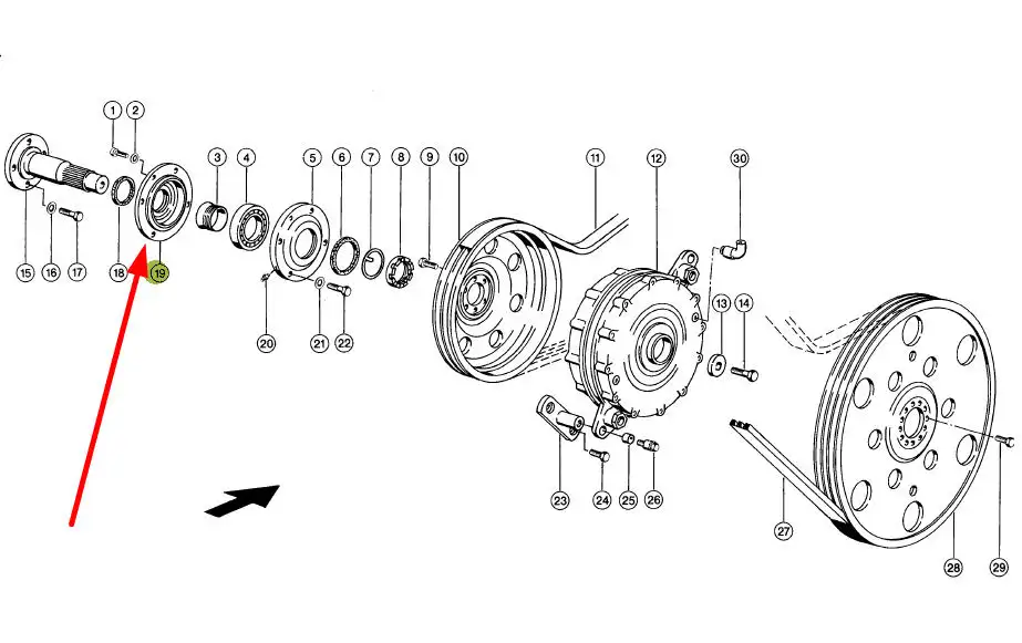 Pochodząca z dekompletacji, mogąca nosić ślady użytkowania, obudowa łożyska bębna młócącego, o numerze katalogowym 669637.1, stosowana w kombajnach zbożowych marki Claas.