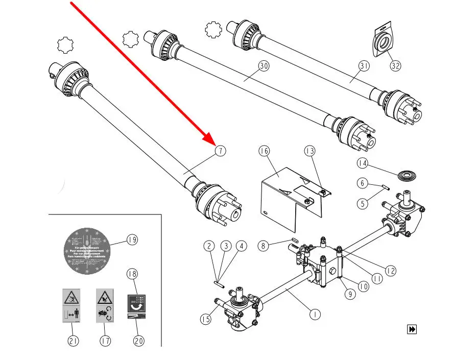 Oryginalny wałek przegubowo teleskopowy ze sprzęgłem 300 N o długości 810 mm i numerze katalogowym 680463, stosowany w rozsiewaczach nawozu marki Sulky.