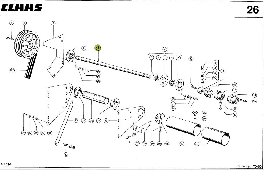 Oryginalny wałek pośredni o wymiarach 35 x 885 mm, stosowany w zrywaczach do kukurydzy marki Claas.