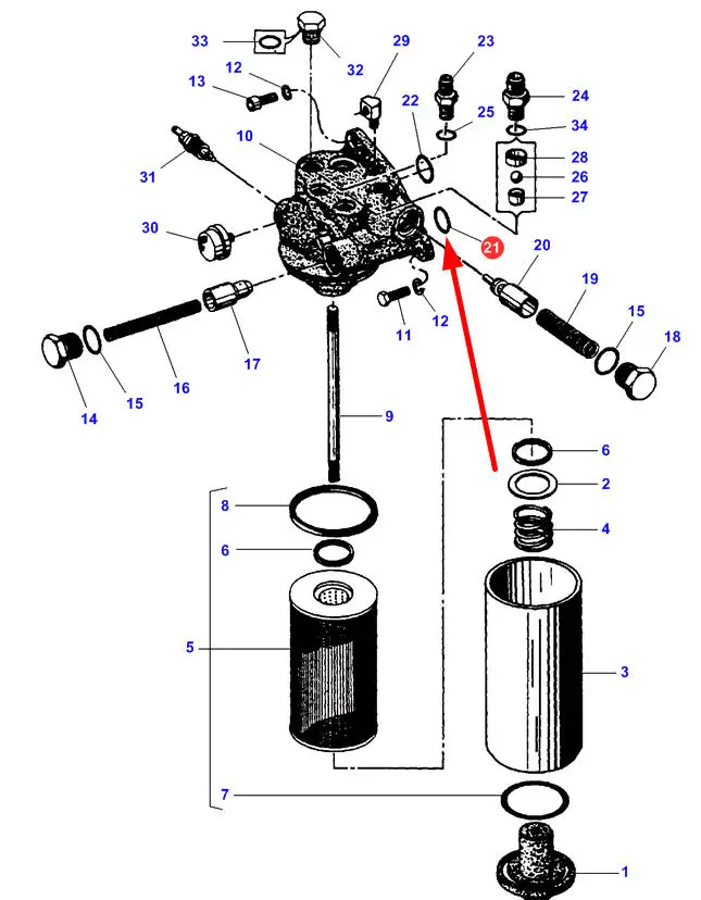 Oryginalny pierścień oring filtra oleju o wymiarach 3/32″ X 1-3/16 i numerze katalogowym 70923568, stosowany w ciągnikach rolniczych marki Massey Ferguson.