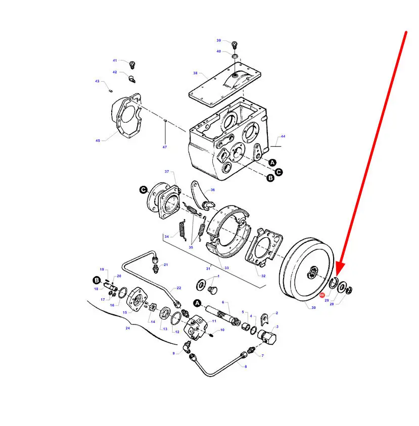 Oryginalny pierścień zabezpieczający hamulca postojowego o numerze katalogowym 70932862, stosowany w kombajnach zbożowych marki Massey Ferguson, Fendt, Challenger.