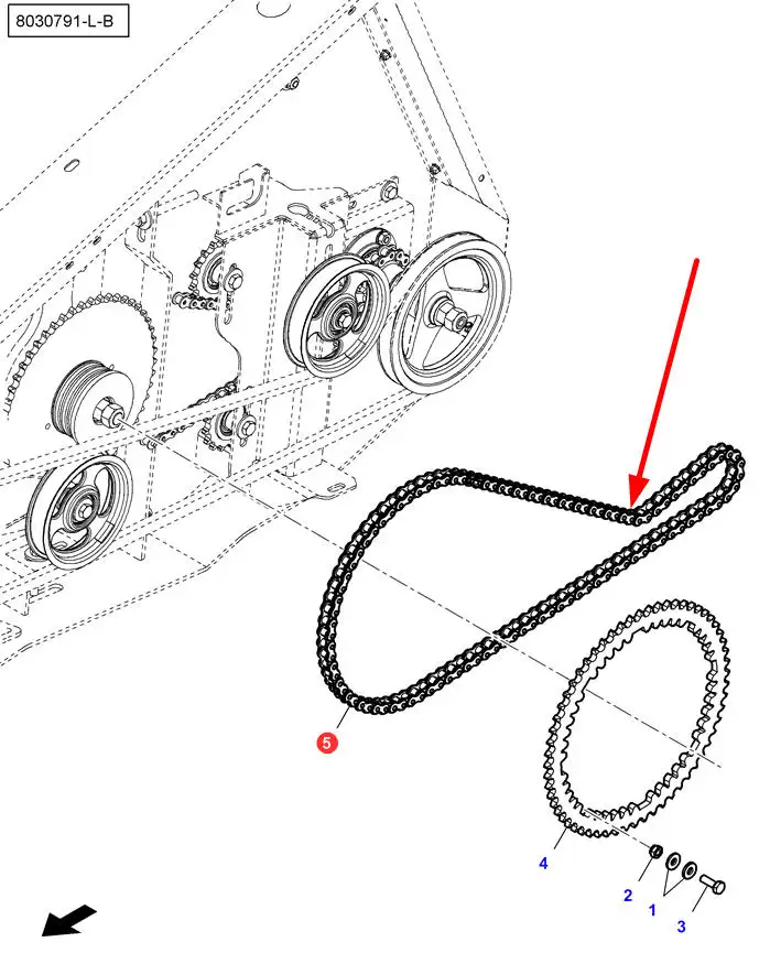 Oryginalny łańcuch rolkowy hederu, stosowany w maszynach rolniczych marki Massey Ferguson.