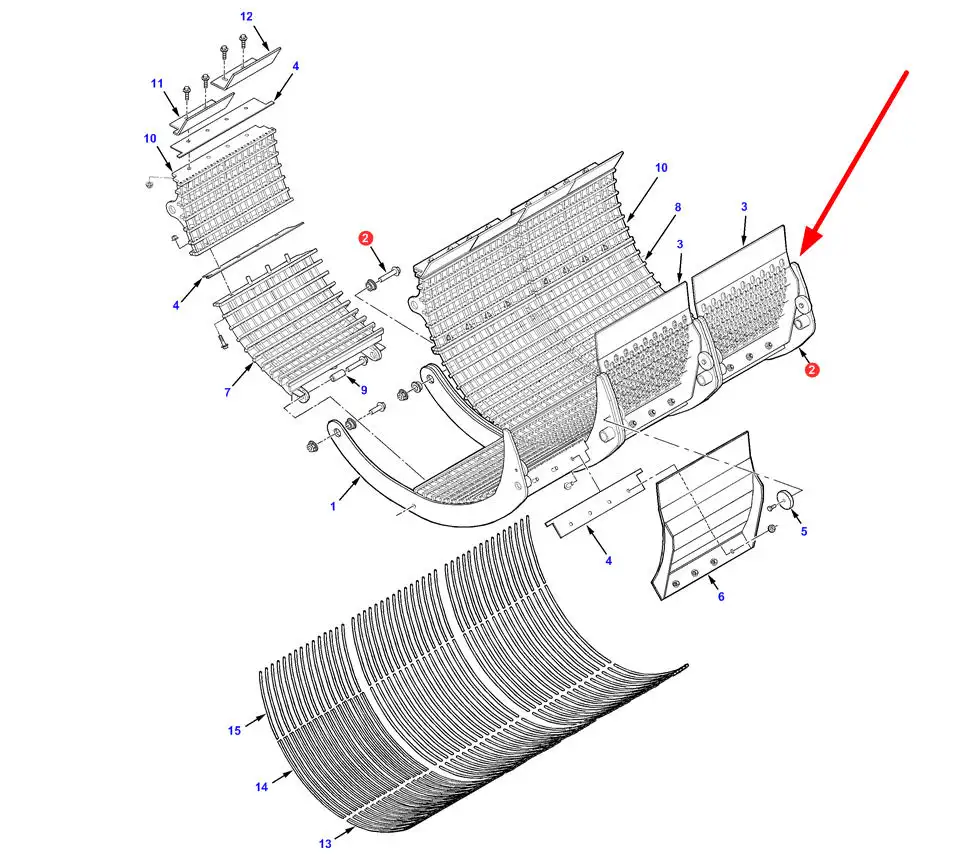 Oryginalny segment klepiska o numerze katlogowym 71408365, stosowany w kombajnach zbożowych marek Massey Ferguson, Fendt i Challenger.