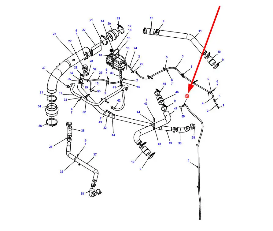 Oryginalny przewód chłodnicy o numerze katalogowym 71409555, stosowany w kombajnach zbożowych marek Massey Ferguson oraz Fendt.