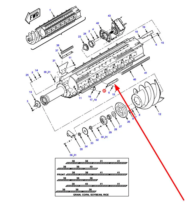 Oryginalna listwa rotora o numerze katalogowym 71420071, stosowana w kombajnach zbożowych marek Massey Ferguson, Challenger, Fendt.
