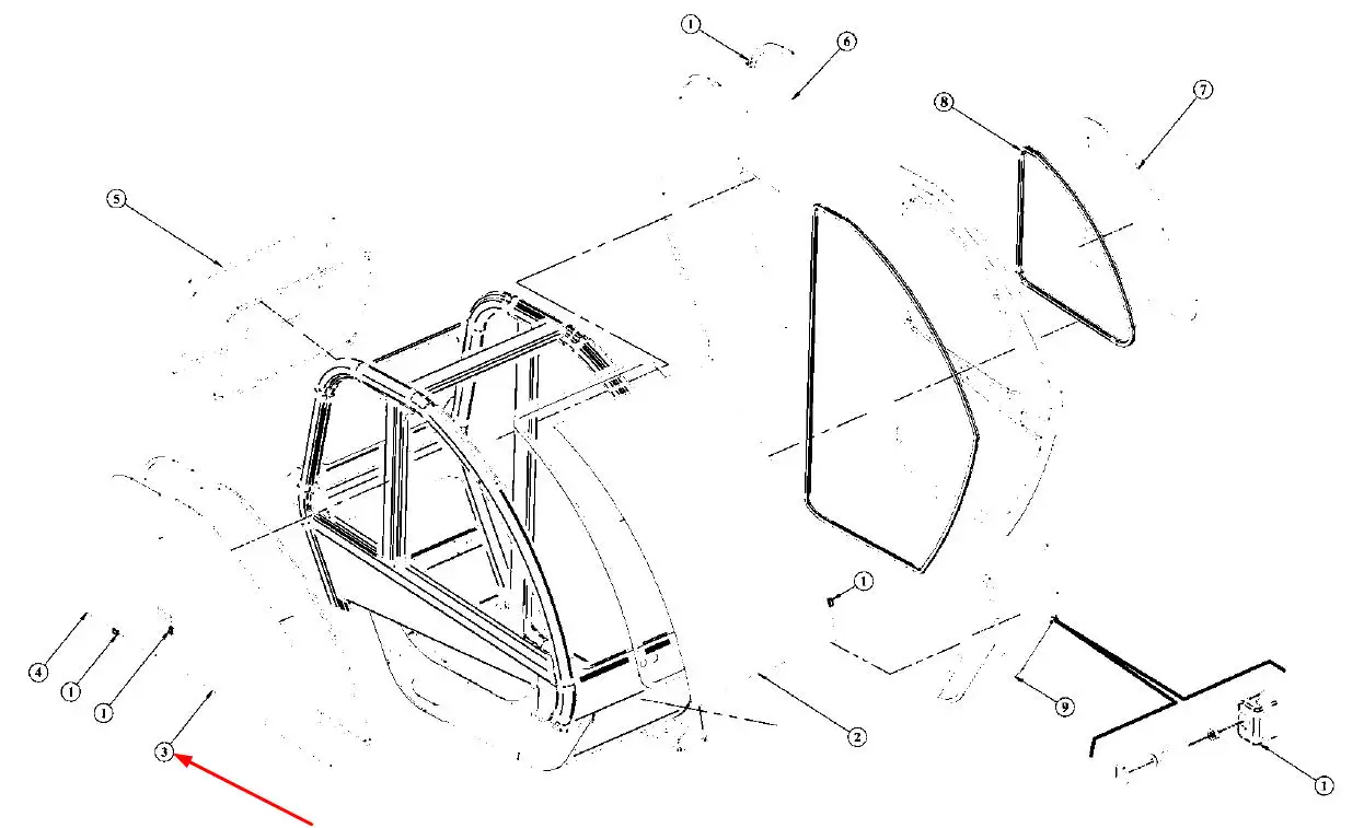 Oryginalna, prawa szyba boczna o numerze katalogowym 715100901, stosowana w ładowarkach marki Faresin.