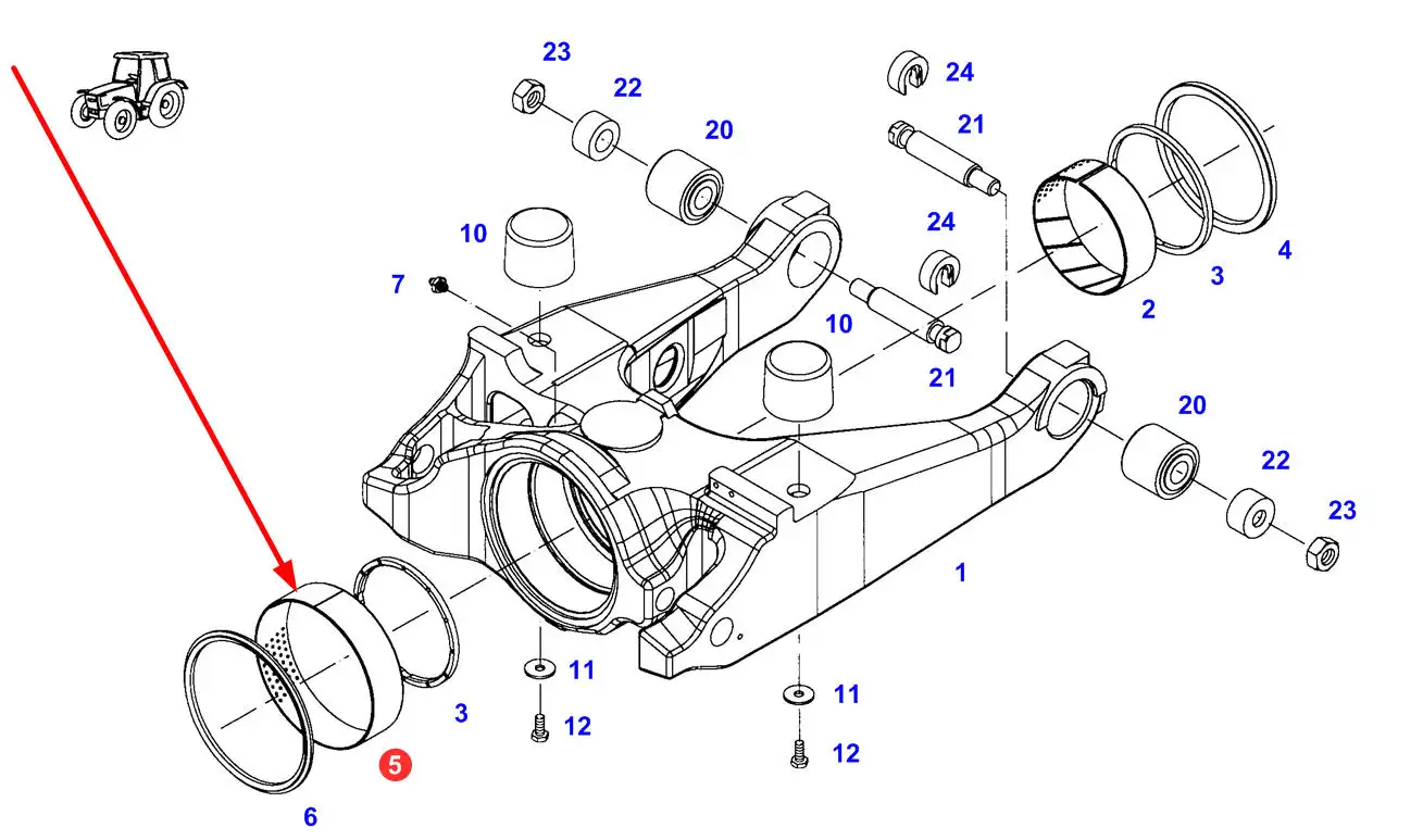 Oryginalna tuleja ślizgowa zawieszenia przedniej osi o numerze katalogowym 716300050030, stosowana w ciągnikach rolniczych marki Fendt.
