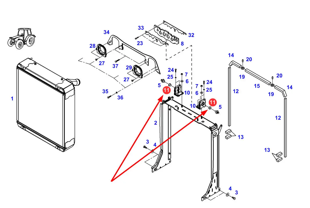 Oryginalna tuleja ramki wentylatora chłodnicy o numerze katalogowym 718201050620, stosowana w ciągnikach rolniczych marki Fendt.