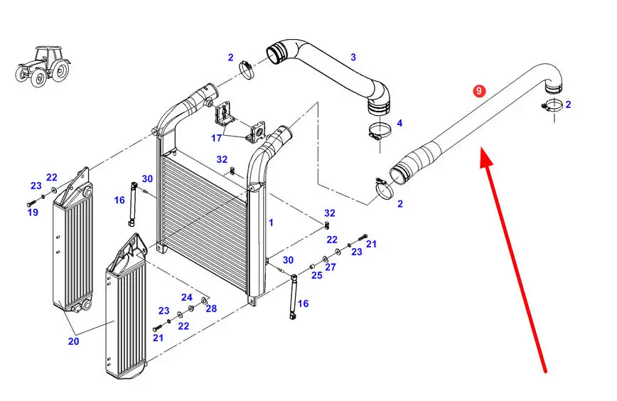Oryginalny przewód intercoolera o numerze katalogowym 725200190021, stosowany w ciągnikach rolniczych marki Fendt.