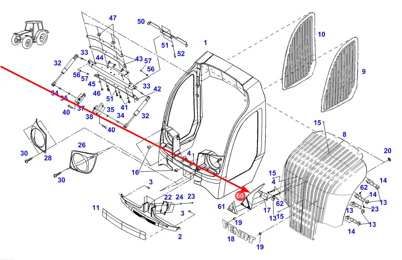 Oryginalne mocowanie logo marki o numerze katalogowym 725500020251, stosowane w ciągnikach rolniczych marki Fendt.