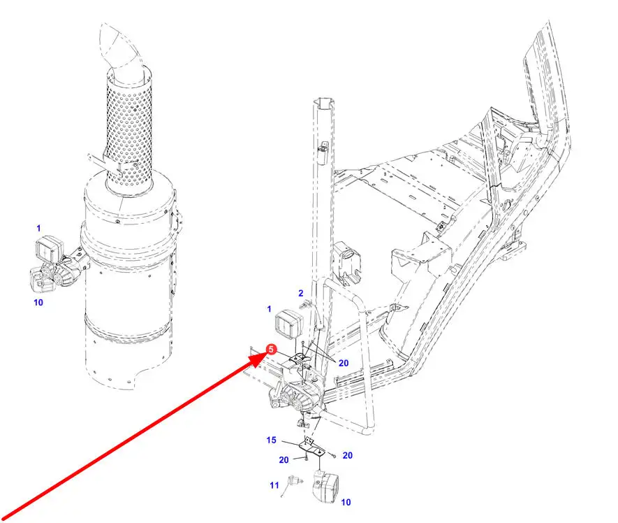 Oryginalny uchwyt lampy roboczej o numerze katalogowym 737900113121, stosowany w ciągnikach rolniczych marek Fendt, Challenger.