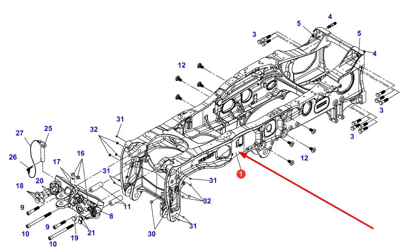 Oryginalny wspornik podwozia o numerze katalogowym 737921030070, stosowany w ciągnikach rolniczych marki Fendt.