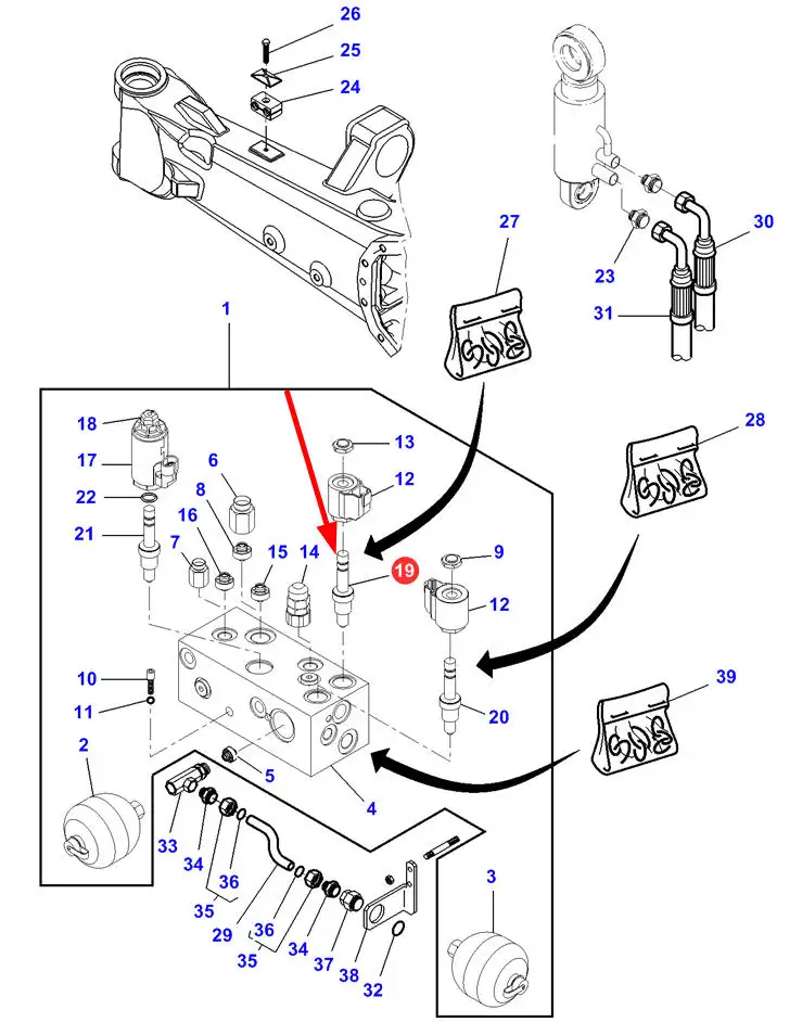 Oryginalny zawór hydrauliczny, stosowany w ciągnikach Massey Ferguson, Valtra, Challenger.