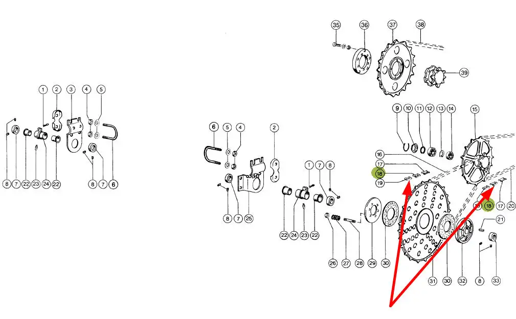 Półogniwo łańcucha napędu nagarniacza o wymiarze S32 i numerze katalogowym 801494.40, stosowane w maszynach rolniczych marki Claas.