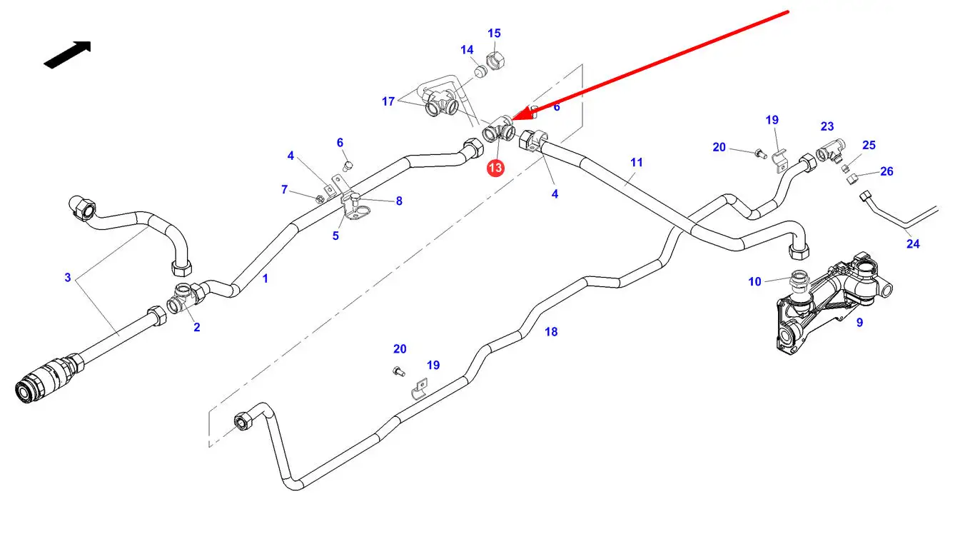 Oryginalny trójnik układu hydraulicznego, stosowany w ciągnikach rolniczych marki Fendt.