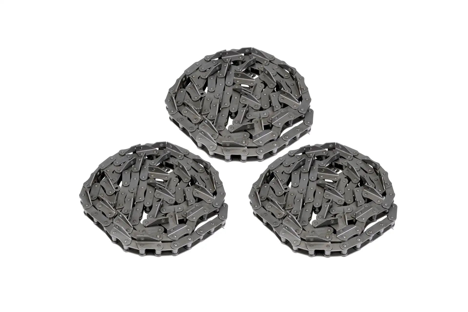 Zestaw trzech łańcuchów przenośnika pochyłego marki Tagex o numerze katalogowym 87372058, stosowany w kombajnach zbożowych marki New Holland.