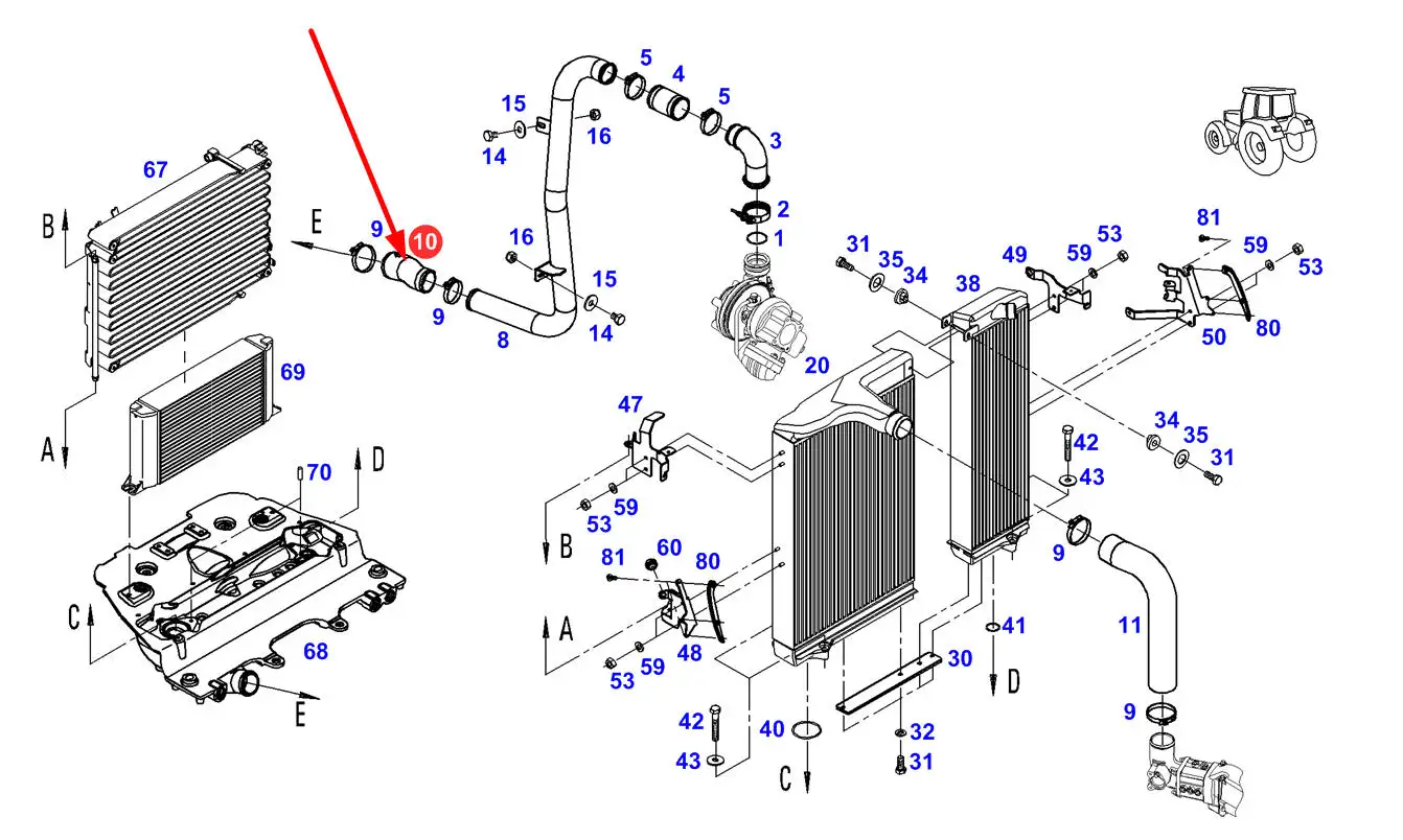 Oryginalna redukcja gumowa przewodu ssącego powietrza doładowującego, stosowana w ciągnikach rolniczych marki Fendt.