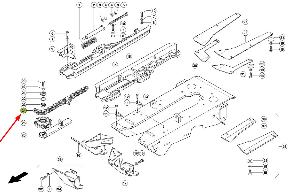 Łańcuch do kukurydzy CA2801 x 70 rolek, 7 zabieraków o numerze katalogowym 998852.0, stosowany w przystawkach do kukurydzy marki Claas.