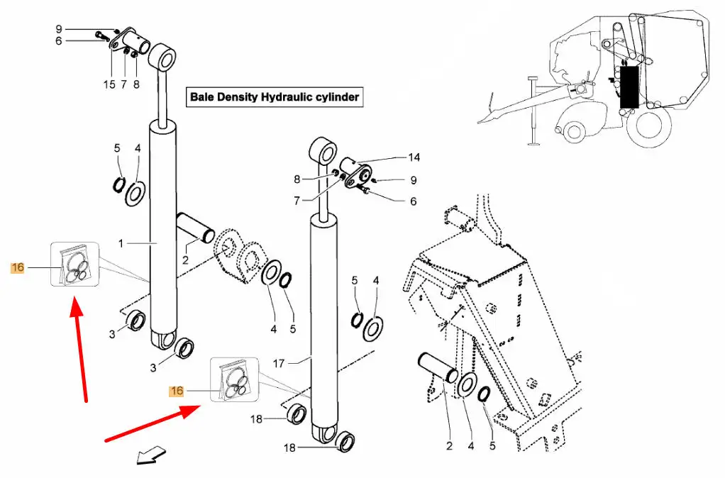 Oryginalny zestaw uszczelniaczy siłownika KB8859909 o numerze A140665430, stosowany w prasach marki Kverneland.