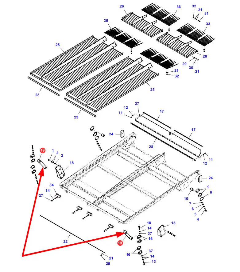 Oryginalne ramię kosza sitowego o numerze katalogowym ACW0799960, stosowane w kombajnach zbożowych marek Challenger, Fendt oraz Massey Ferguson.