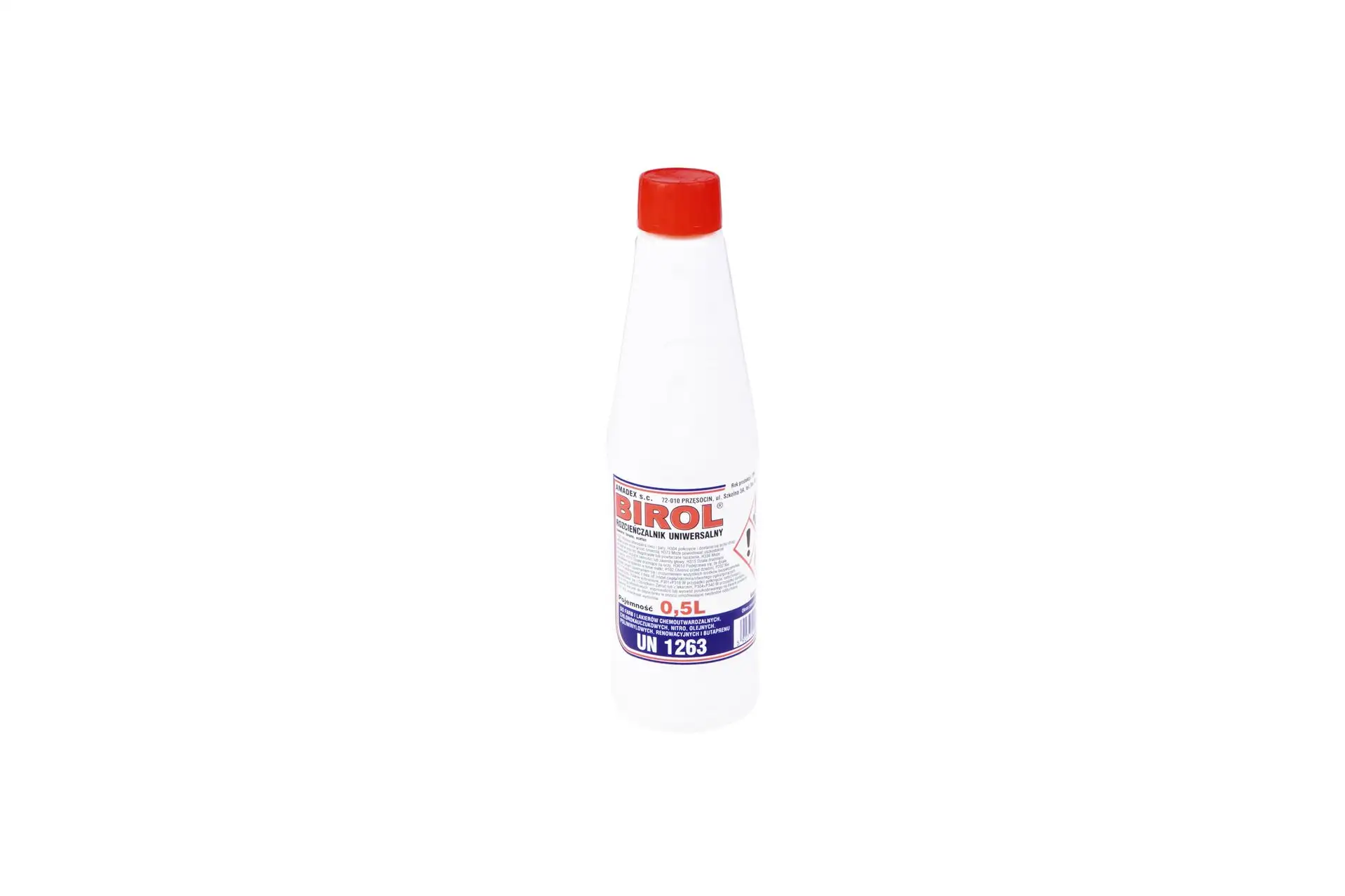 Rozcieńczalnik uniwersalny marki Birol w opakowaniu o pojemności 500 ml, stosowany m. in. do prac lakierniczych.