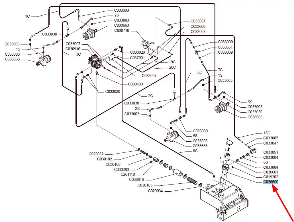 Oryginalna obudowa filtra oleju hydraulicznego o numerze katalogowym C036600, stosowana w ładowarkach marki MultiOne.
