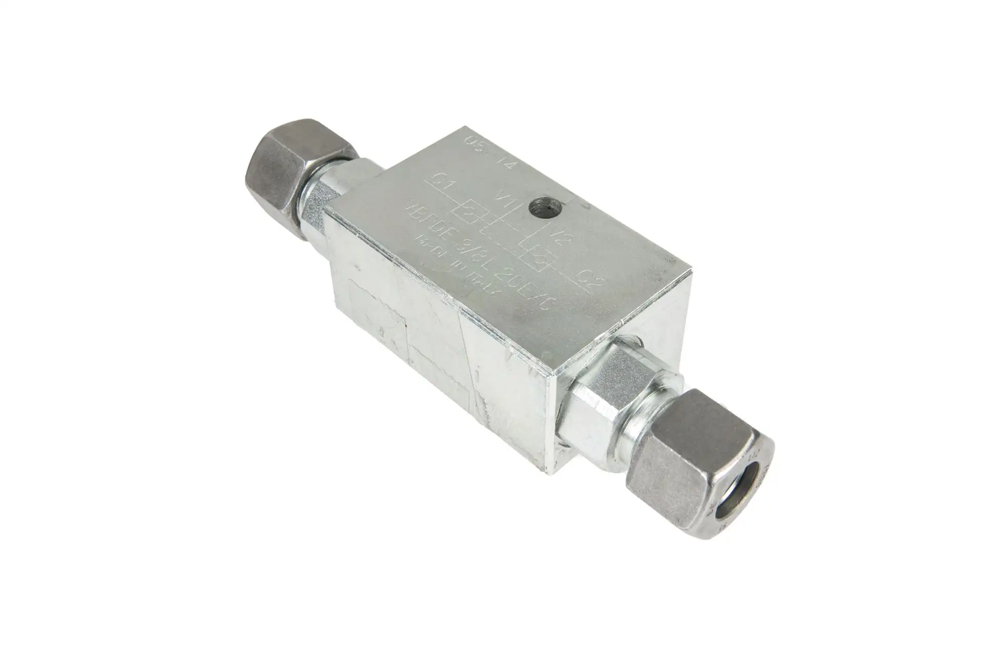 Zawór zwrotny bliźniaczy o oznaczeniu VBPDE 12L G3/8 L2 CEXC M18 x 1,5 mm i numerze katalogowym C056-V0110, o zastosowaniu w maszynach i pojazdach rolniczych wielu marek.