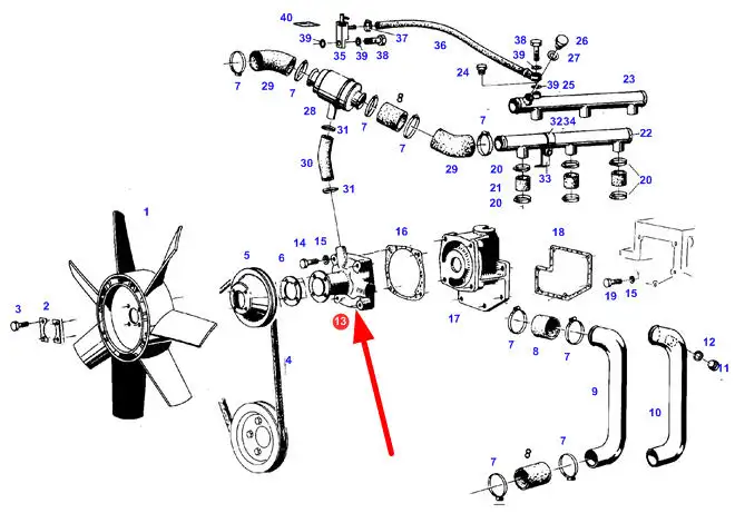 Część zamienna oryginalnej pompy do wody chłodnicy, oznaczona numerem katalogowym C281200610010, pasuje do ciągników rolniczych wielu marek