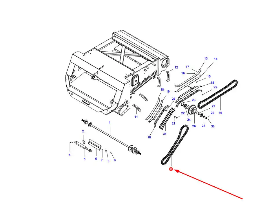Oryginalny łańcuch rolkowy 20B-1 x 72 rolki o numerze katalogowym FD28273942, stosowany w kombajnach zbożowych marek Massey Ferguson, Fendt i Challenger.