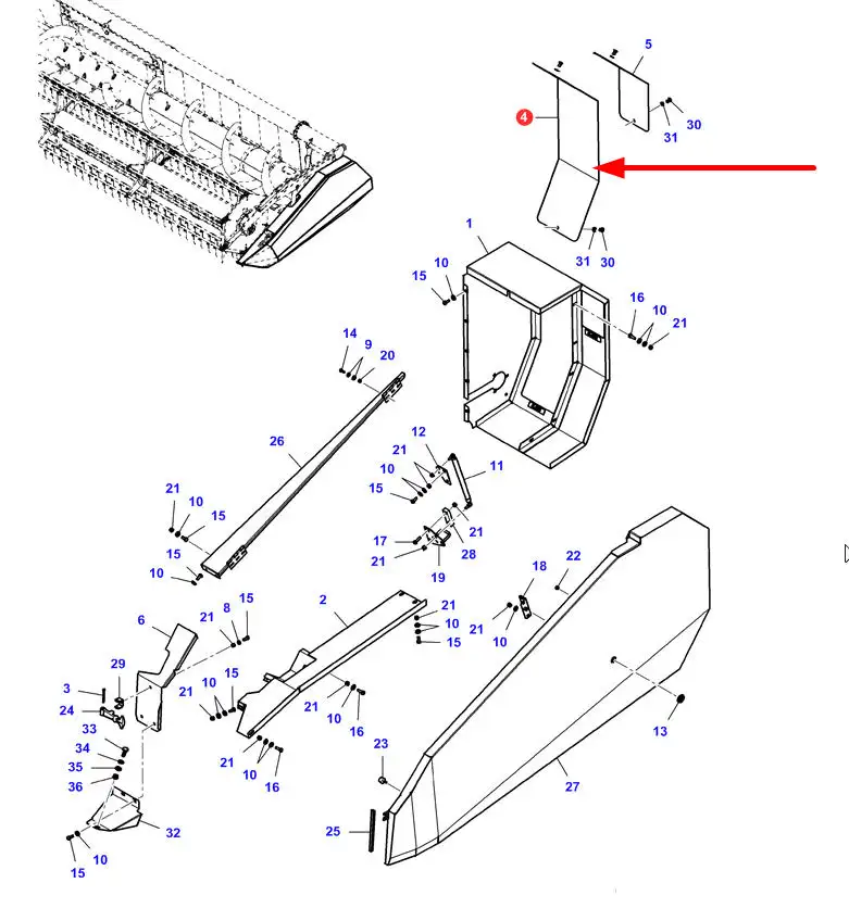Oryginalna blacha osłonowa lewej części hedera Power Flow montowanego w kombajnach zbożowych marki Challenger, Fendt, Laverda, Massey Ferguson