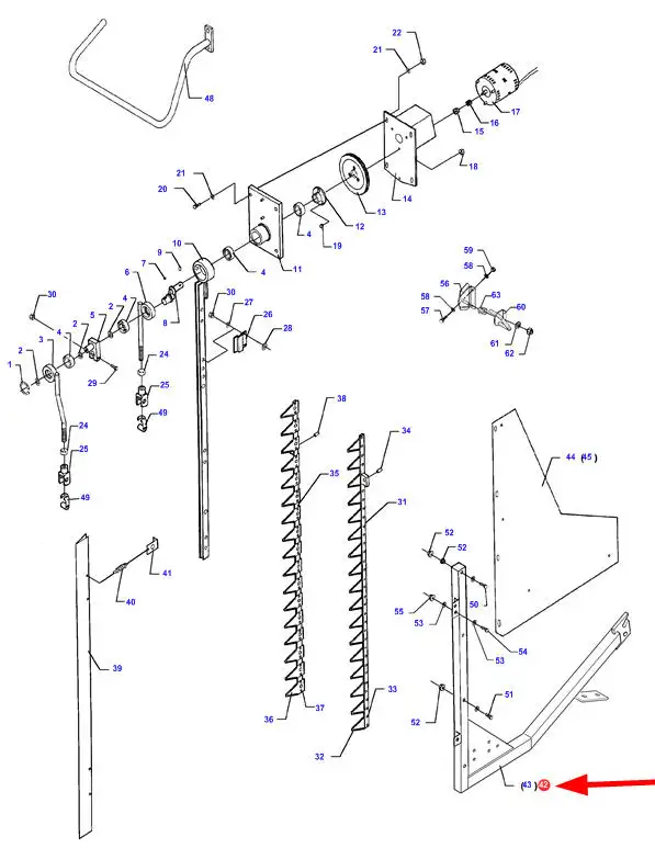 Oryginalny wspornik bocznej listwy nożowej o numerze katalogowym D28285169, stosowany w kombajnach zbożowych marek Massey Ferguson, Fendt, Laverda oraz Challenger.