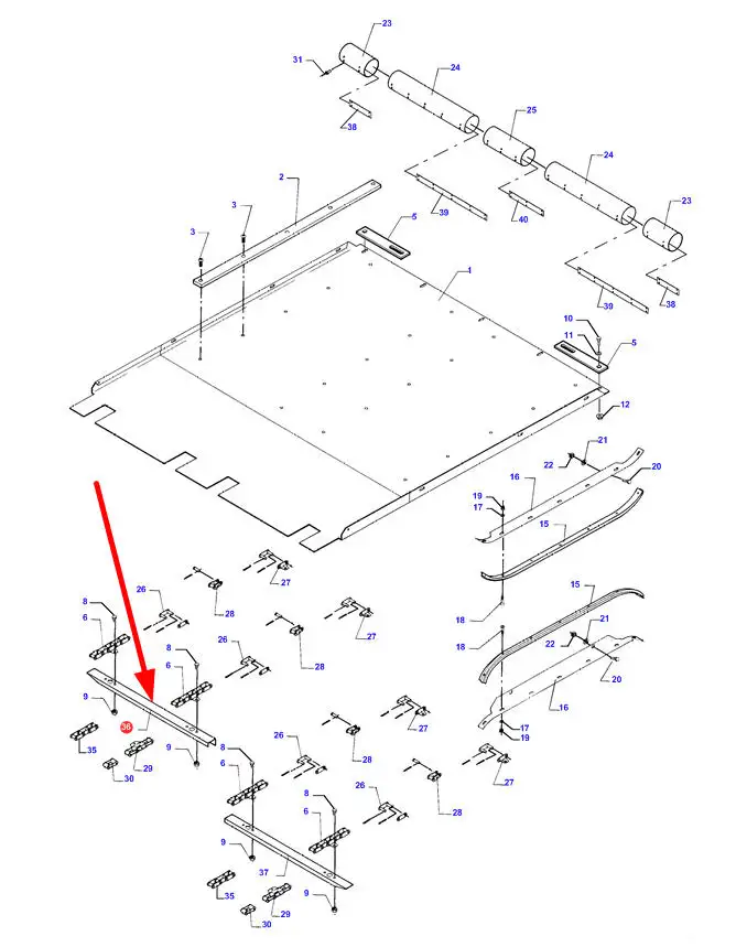 Oryginalna istwa przenośnika pochyłego prawa o numerze katalogowym D28285406, stosowana w kombajnach zbożowych marek Challlenger, Fendt oraz Massey Ferguson.