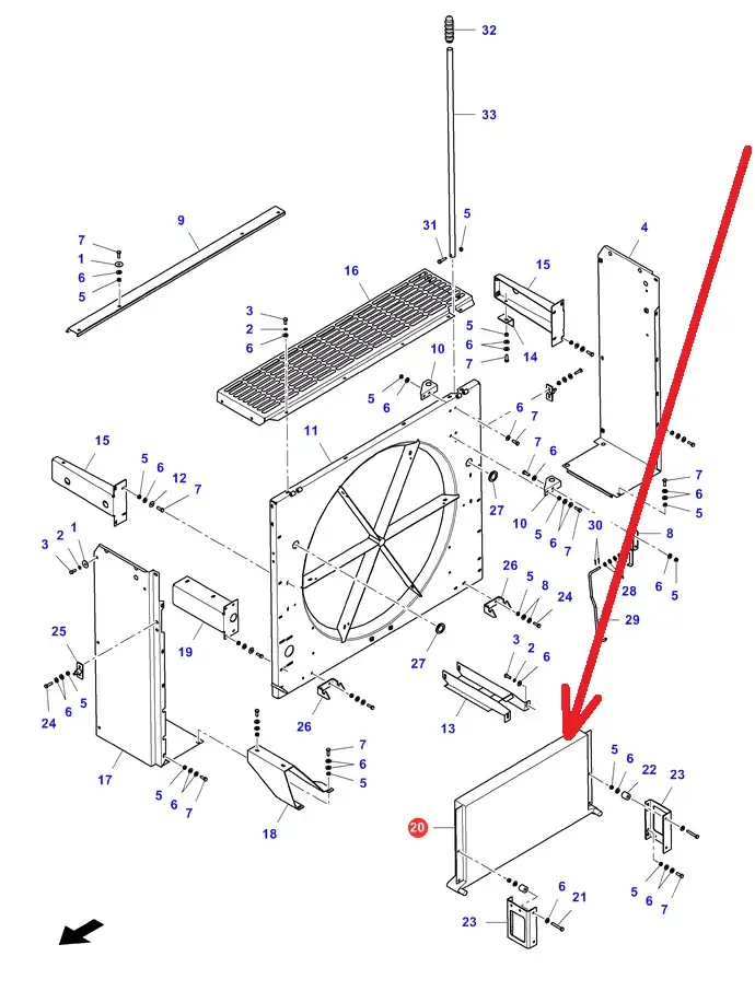 Oryginalna chłodnica układu klimatyzacji o numerze katalogowym D28784065, stosowana w kombajnach zbożowych marek Massey Ferguson, Fendt, Challenger.