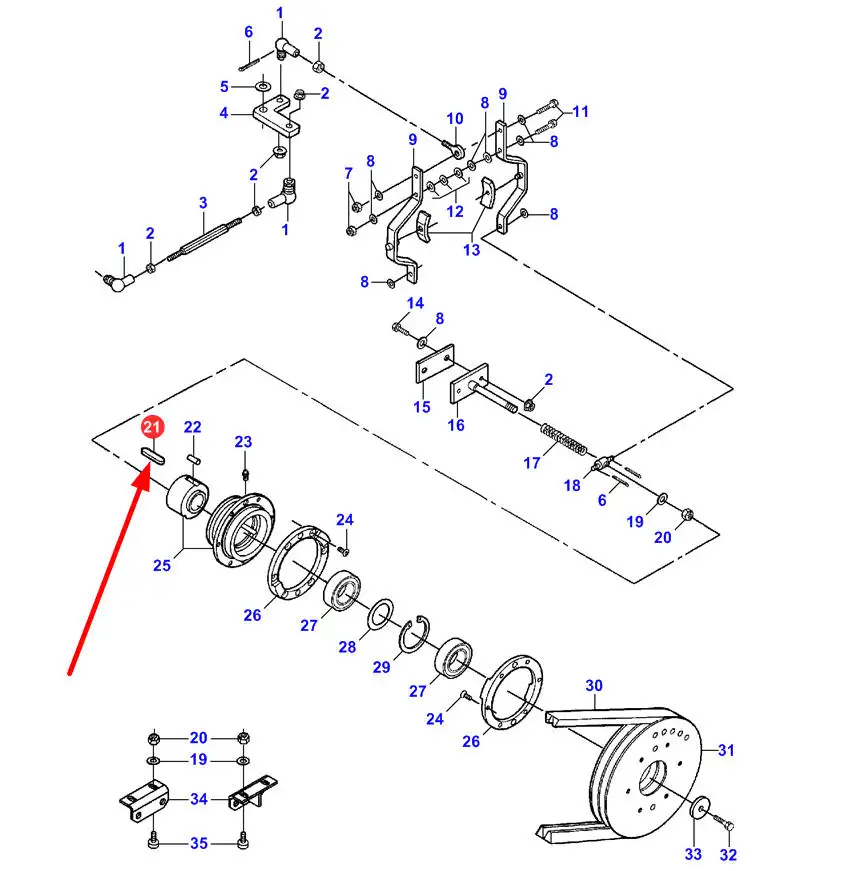 Oryginalny wpust pryzmatyczny sprzęgła siekacza słomy typu A o wymiarach 12 x 8 x 40 i numerze katalogowym D43106200, stosowany w kombajnach marek Challenger, Fendt oraz Massey Ferguson.