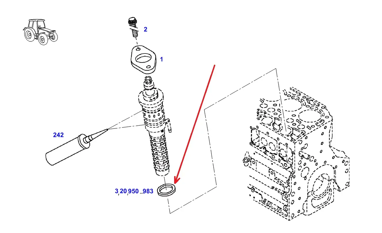 Oryginalna podkładka wtryskiwacza o szerokości 2,3 mm, średnicy wewnętrznej 20 mm i numerze katalogowym F119200710310, stosowana w ciągnikach rolniczych marki Fendt.