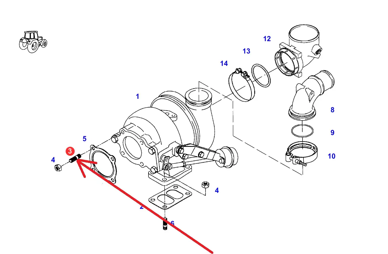 Oryginalna szpilka turbosprężarki o wymiarach M10 x 40 i numerze katalogowym F291200100140, stosowana w ciągnikach rolniczych marki Fendt.