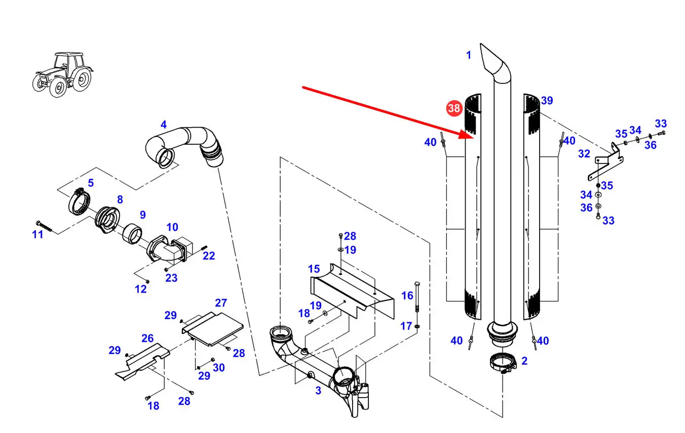Oryginalna osłona tłumika wydechowego o numerze katalogowym F339202100271, stosowana w ciągnikach rolniczych marki Fendt.
