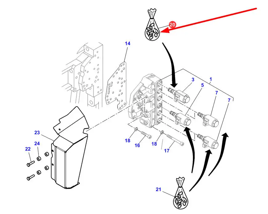 Oryginalny komplet uszczelniaczy elektrozaworu rozdzielacza hydraulicznego o numerze katalogowym F716150200090, stosowany w maszynach maszynach marek Massey Ferguson oraz Challenger.