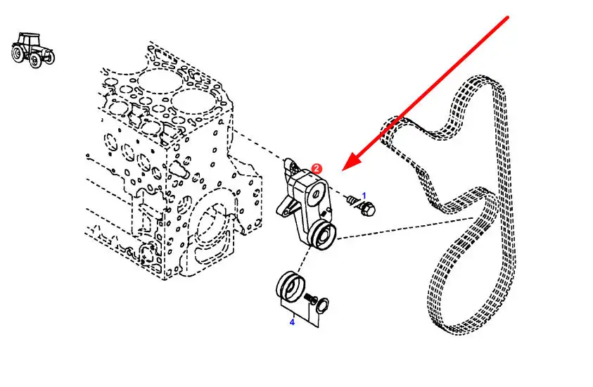 Oryginalny, kompletny napinacz paska wieloklinowego osprzętu silnika o numerze katalogowym F731200040110, stosowany w ciągnikach rolniczych marki Fendt.