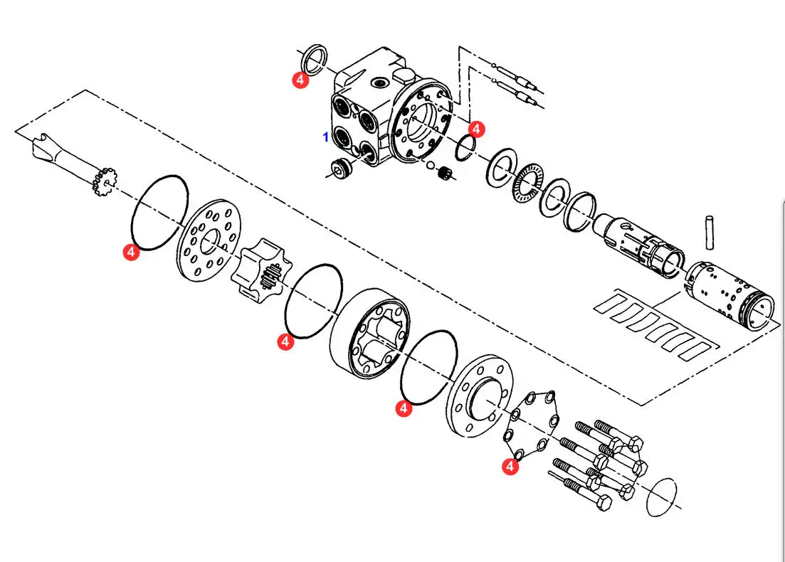 Oryginalny komplet pierścieni uszczelniających orbitrola o numerze katalogowym F916400090010, stosowany w ciagnikach rolniczych marek Fendt, Massey Ferguson, Challengr, Valtra.