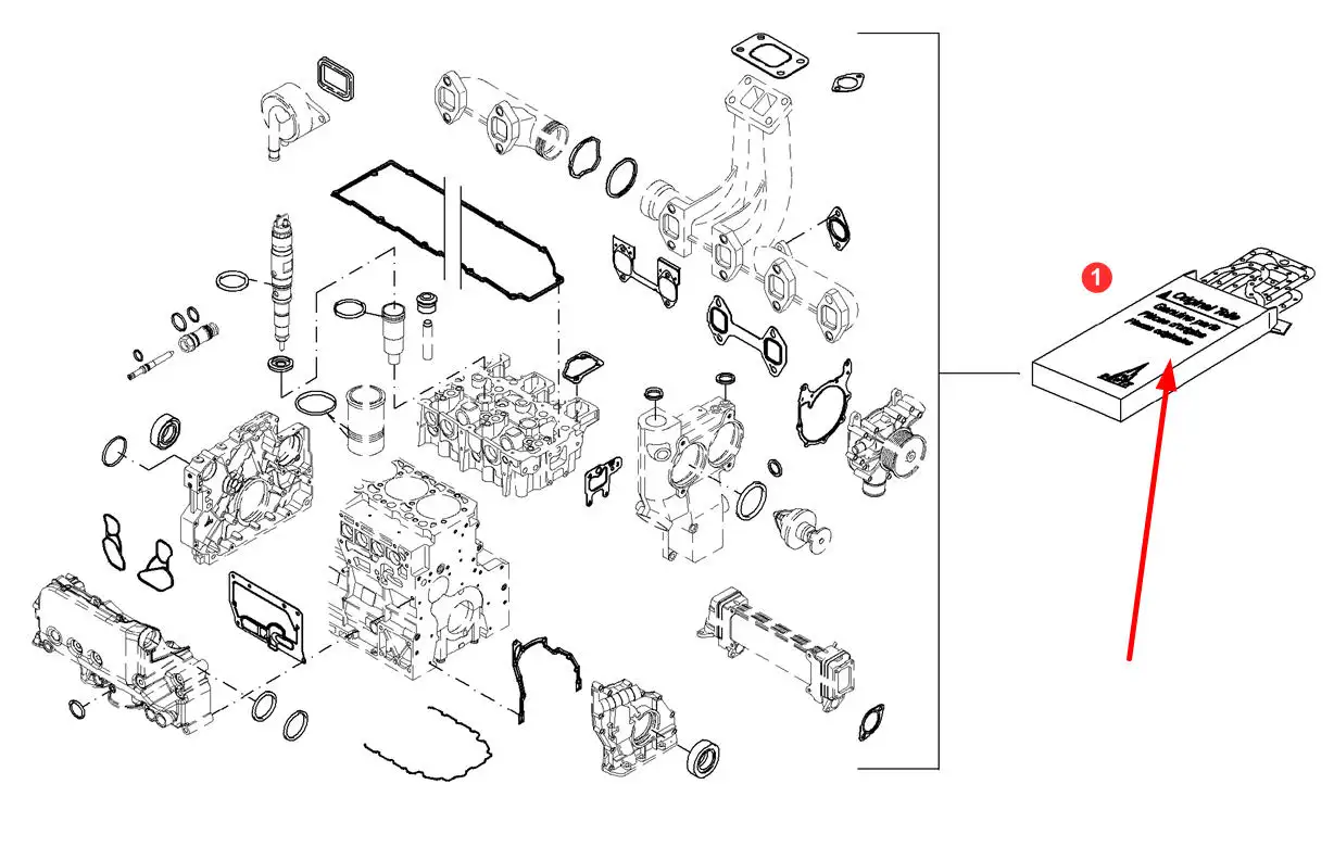 Oryginalny zestaw uszczelek silnika Deutz TCD2013 L06 o numerze katalogowym F934201210520, stosowany w ciągnikach rolniczych marki Fendt.