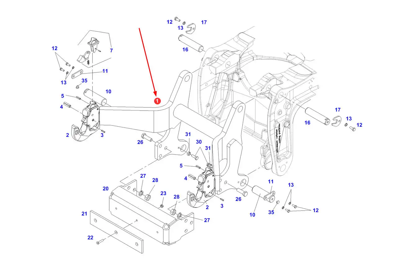 Orygianalne ramiona przedniego TUZ-a o numerze katalogowym H737300110012, stosowane w ciągnikach rolniczych marki Fendt.