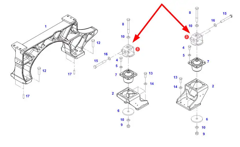 Oryginalne, pochodzące z dekompletacji, mogące nosić ślady użytkowania mocowanie poduszki kabiny o numerze katalogowym H737500200060, stosowane w ciągnikach rolniczych marki Fendt.
