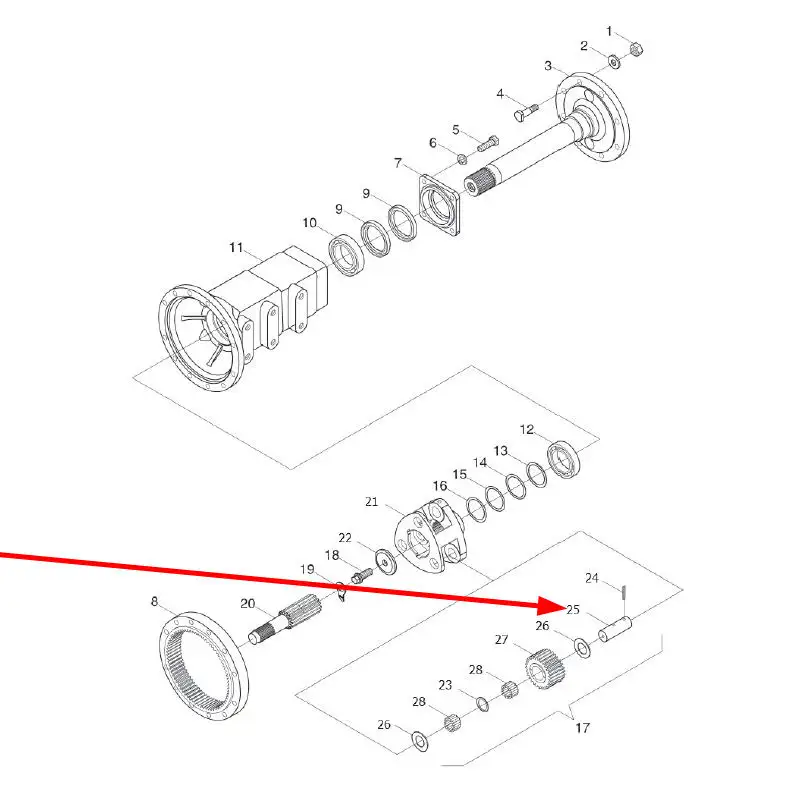Oryginalny sworzeń koła zębatego o numerze katalogowym L0000448, stosowany w ciągnikach rolniczych marek Arbos oraz Lovol.