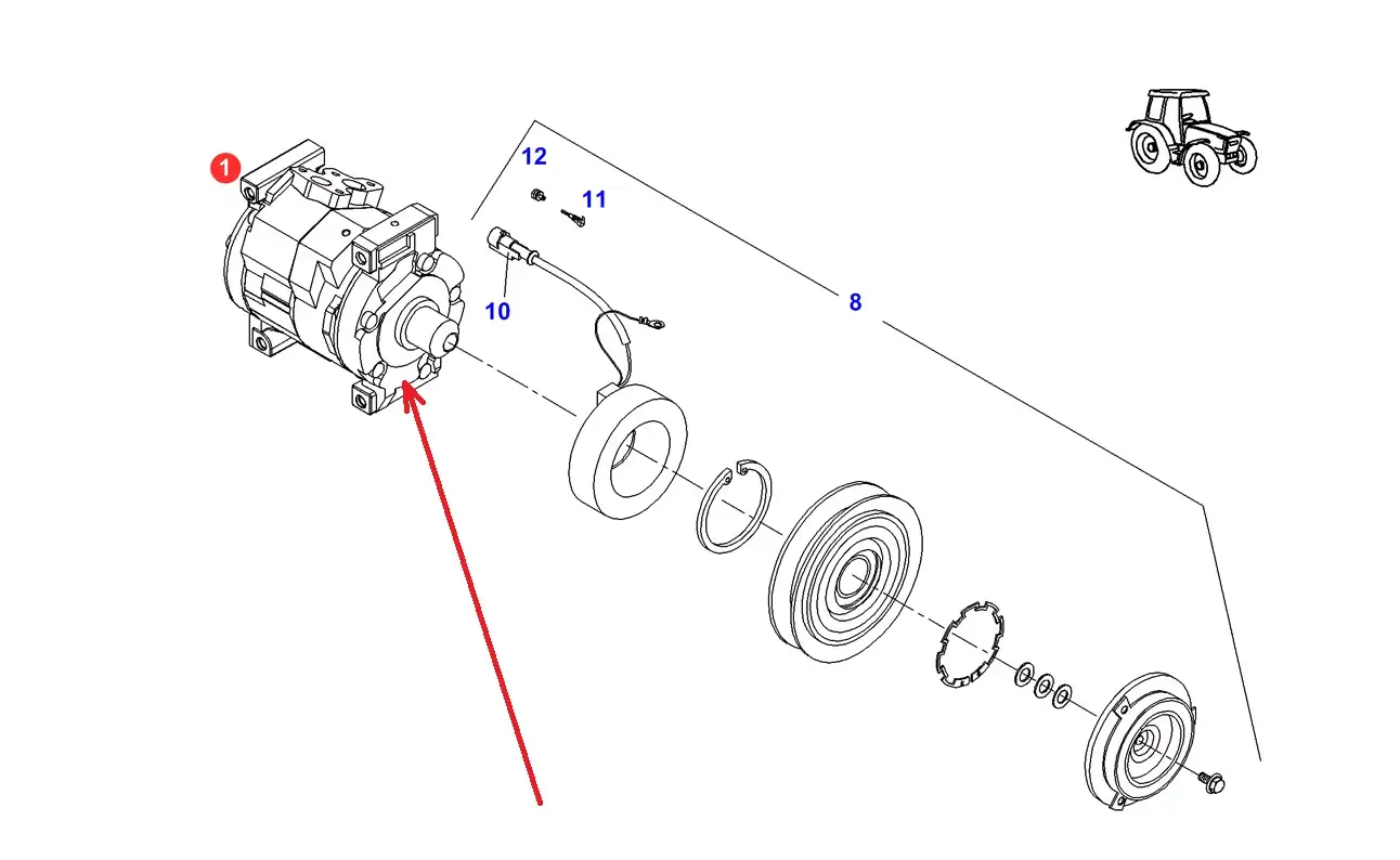 Oryginalna sprężarka klimatyzacji o numerze katalogowym G117551020111, stosowana w ciągnikach rolniczych marki Fendt.