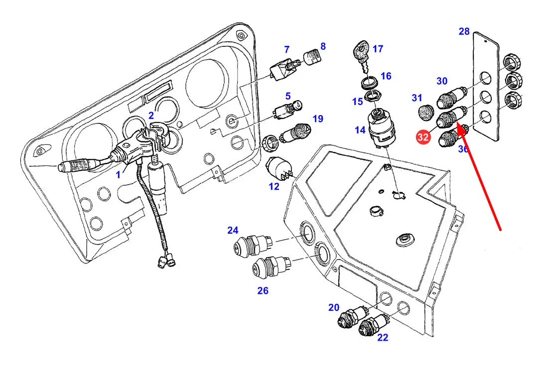 Oryginalny przełącznik blokady mechanizmu różnicowego, stosowany w ciągnikach rolniczych marki Fendt.